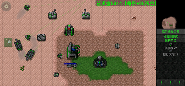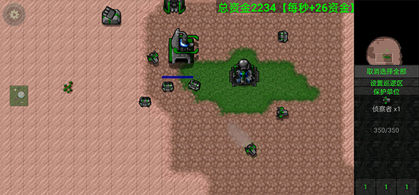 游戏采用直观触控逻辑:单击选择单位,同类型单位双击全选,长按屏幕中心扩散选中范围,两点拖拽形成矩形框选区域。