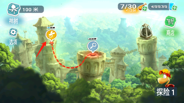 选定英雄后横向滑动屏幕,雷曼便即刻启程,奔跑节奏由你掌控。