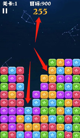 消除两个及以上同色方块即可得分,连消次数越多分数加成越高