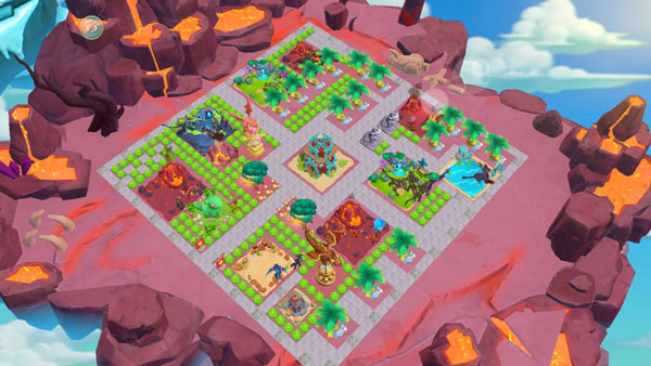 有熔岩翻涌、热浪蒸腾的火山浮岛;