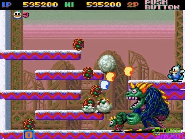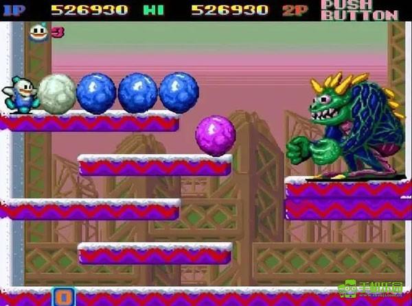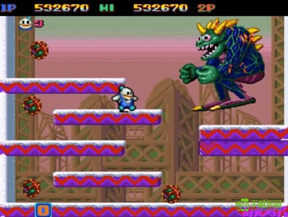 3、《雪人兄弟》设有时限机制——只要坚持到时间结束即可过关,无论BOSS是否被击败。有玩家尝试在不清小怪的情况下直接绕到BOSS身后持续普攻,结果直到过关BOSS仍未倒下,似乎印证了“子弹无法击杀BOSS”的说法。