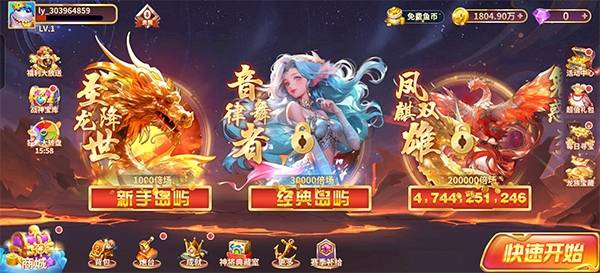 1、首次进入游戏后,点击“快速开始”即可立即开启捕鱼之旅。