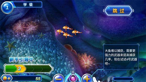4. 捕鱼即得金币奖励,金币可用于升级炮台、解锁强力武器与特殊道具,助力玩家高效应对高难度鱼群,形成良性成长循环。