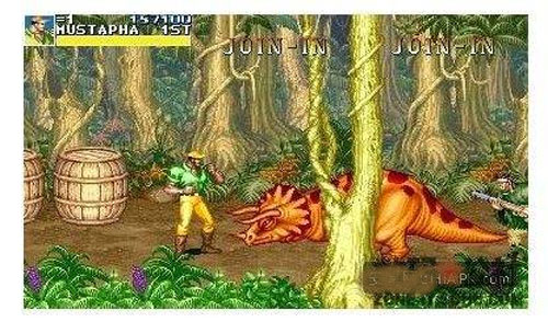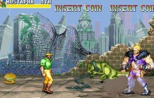 恐龙快打将史前巨兽与未来都市巧妙融合。故事发生在地球生态剧变后的26世纪,恐龙重返地表,与幸存人类在废土城市中展开生存博弈。游戏中角色可拾取铁管、电锯、手雷等多样化武器,道具不仅影响战斗节奏,更决定关卡推进策略。拳脚连招扎实流畅,敌人AI富有层次,从暴龙战士到机械改造人,每场遭遇都充满张力。