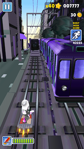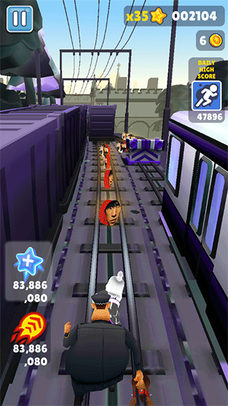 地铁跑酷牛犇犇版本是由民间高手深度优化的特色模组,整体视觉以梦幻紫为主调,场景细节更富层次感,金币被替换成角色Q版头像,拾取时还有趣味反馈。背景音乐经过重新编曲,律动鲜明,增强沉浸节奏。操作逻辑完全继承原作精髓,玩家依然要灵活滑铲、跳跃、左右闪避,在流光溢彩的彩虹轨道上穿梭奔逃,躲避紧追不舍的巡逻警员与各类障碍。