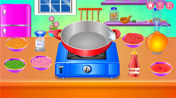 进入无烦恼厨房官方正版后,主界面呈现开放式厨房全景,操作区域一目了然。