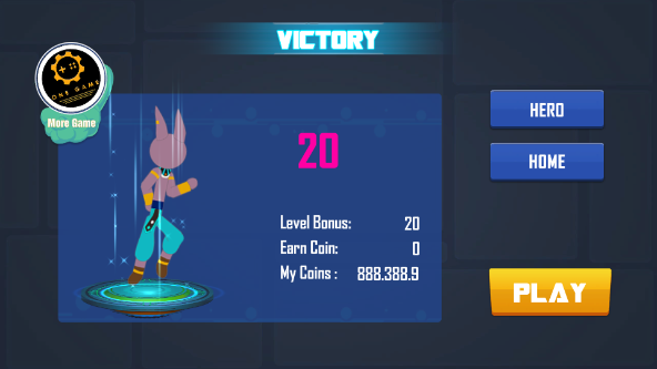 进入游戏后,右上角设置选项可独立调节音效与背景音乐开关。“hero”按钮用于更换己方角色,不同角色拥有独特体型与初始属性差异。