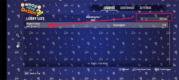 非好友玩家可在自定义模式中搜索房间关键词,手动匹配目标会话。