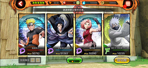 出战前可预设三名主力忍者,根据敌人特性灵活调整首发阵容。