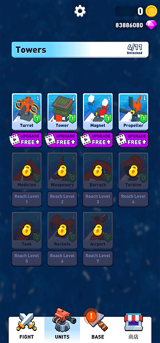 点击Units进入兵种管理界面,可更换或强化当前部署的战斗单位。