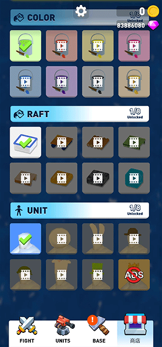 在Base选项中升级木筏本体,扩大承载空间,容纳更多成员与装备。