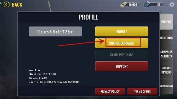 在设置页面中找到“CHANGE LANGUAGE”选项,点击进入语言选择界面。