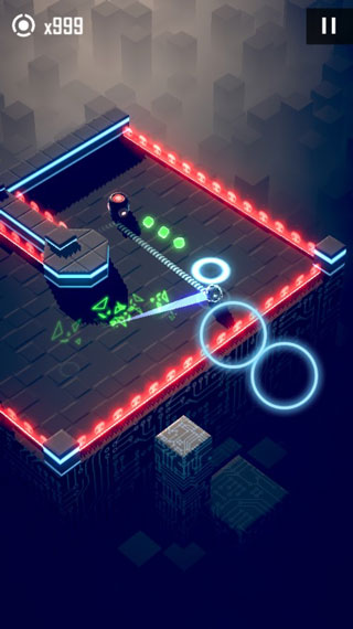 初入赤核世界,无需复杂教程,上手即战。核心围绕三大动作展开:锁定目标路径、按住屏幕进入子弹时间、借力弹射完成击杀。你将化身一枚疾驰小球,在密集火力网中穿行,依靠弹射反制敌人,所有攻击均可被规避,所有敌人皆可被击破。子弹时间无次数限制,随时暂停战局,从容规划下一步行动。