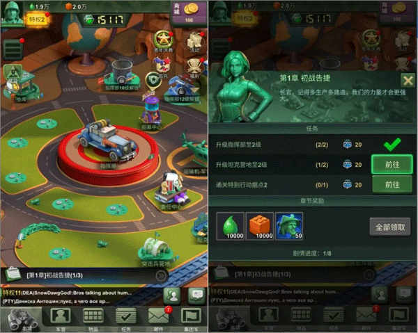 特别行动、秘密基地、绝地反击等副本每日开放,稳定产出军官碎片、经验材料与专属装备。实力尚弱时可先扫荡黄军据点积累经验,逐步过渡到高强度对抗环境。