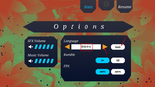 打开游戏后进入设置界面,找到language选项,向右滑动语言列表,选择简体中文,确认应用即可完成切换。