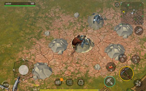 升级可通过挖矿实现。手持石镐对准矿物,点击“挖矿”按钮即可获取经验。升级后及时制作背包并装备,激活下半部分物品栏;同时在家内放置多个木箱,用于存放多余物资,避免携带负担过重。