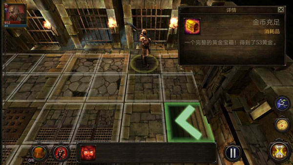 探索过程中,双击可交互物品(如宝箱)即可触发事件,其中可能藏有珍贵道具,也可能遭遇陷阱。若发现陷阱,需使用特殊骰子进行破解:投掷结果可能造成全体附近角色受伤、成功解除陷阱并获得奖励,或毫无反应。战斗时,当敌人处于英雄攻击范围内,其脚下会浮现红色标识,表示可发动攻击。每位英雄每回合仅能攻击一次,若点击后仅显示圆圈,则代表该单位已无法行动,需通过右下角沙漏按钮跳过回合。跳过时,若周围无敌人则安全过渡;若有敌人,则可能遭其突袭。