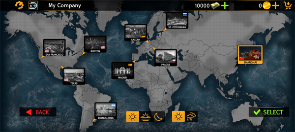 选定出发区域后,可在涵盖全球多地的真实地图中开启旅程,并自由调节当前时段与天气条件,如晴天、雨天、黄昏或深夜,增强沉浸感。