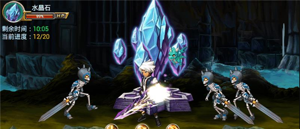 骷髅守卫(28、38级)仅会上挑,技能命中后可接连招;影子刺客血量低,受击易中断施法;蓝狼(38、48级)技能范围脚下发光,跳跃可规避,上挑击飞有效;小恶灵技能释放明显但攻击距离短,需在其接近水晶前快速清除;水鱼释放旋转技能时无法上挑,可先聚怪再群攻;盔甲兵多段乱刺易致眩晕,远程攻击可用上挑打断;骷髅法师(48级18关)威胁极大,一次技能可削去水晶30%血量,进图应优先拦截击杀。