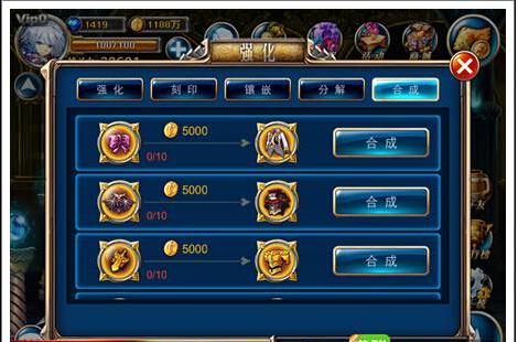 宝石系统对非高氪玩家性价比偏低,V6以下合成难度大、效果微弱。建议平民玩家通过混沌之塔缓慢积累,避免被虚高战力误导,忽视绝攻、物攻等实战属性。