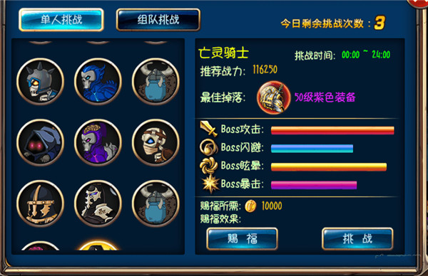 三十级后应聚焦精英副本与挑战BOSS,高效获取紫色装备。相比普通副本,精英副本体力消耗更少、掉率更高。四十级前挑战BOSS无需开启赐福,避免金币浪费。