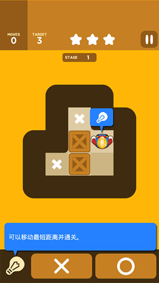 直接将箱子推向钱币所在位置即可过关。本关作为入门教学,只需先点击箱子,再点击目标点,角色便会自动执行推送动作。