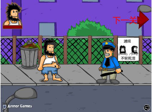 流浪汉可使用拳脚攻击,途中拾取黄色果实等道具投掷伤敌。