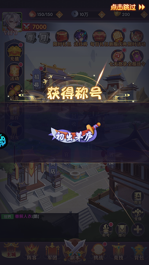 角色升级即可领取神级武将,大幅降低前期培养门槛;