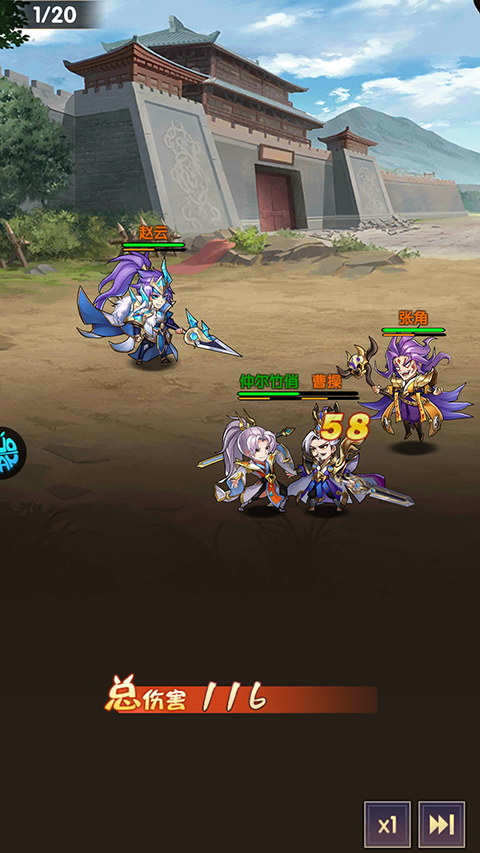 Q版画风与精美场景:角色造型圆润可爱,场景细节丰富且富有动感,武将原画精准体现其个性特征,整体UI配色协调,风格统一,完美契合三国主题氛围。