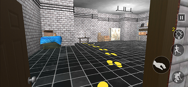 室内地面上会出现醒目的黄色脚印,沿着这些标记继续探索。
