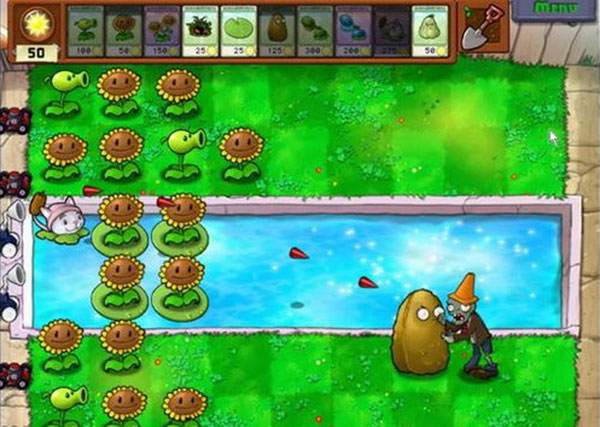 在泳池关卡中及时部署睡莲作为水上平台,再在其上种植攻击植物。