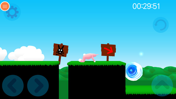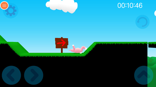 正式开始挑战前,先熟悉基础操作:左下方方向按钮控制兔子人左右移动,右侧为跳跃功能