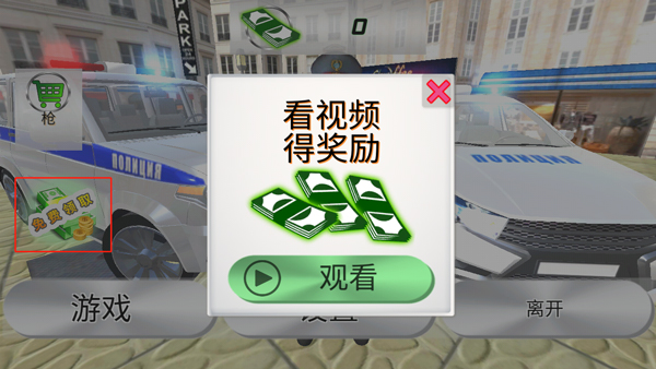 点击左侧“免费领取”选项,通过观看广告获取初始资金奖励。