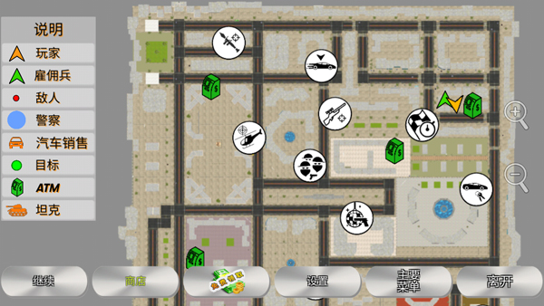 点击左上角地图图标,可查看整座城市的布局及各类任务标记说明。