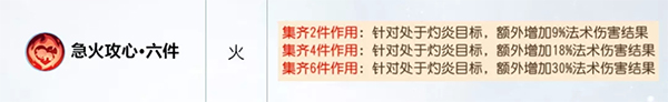 灼炎增伤套装爆发力极强,可提升30%法术伤害结果,顺风时推波助澜,逆境中力挽狂澜。所谓灼炎,包含小火龙的引燃与火灵兽的灼烧效果。虽常被视为魔王专属,但其他法系门派亦可协同触发。试想多法系速推阵容中,魔王率先施加灼炎,小雷音携此套装打出“一念成佛”,伤害将呈几何级增长。此类联动不受安魂咒削弱,实战价值极高。