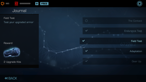 选择【笔记本】图标,可进入试验模块,进行现场测试、耐久训练以及跑酷前的战术准备。