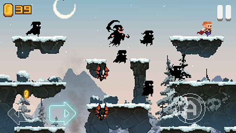操作方面,玩家通过点击屏幕上的虚拟按键控制角色移动或跳跃。在空中再次点击跳跃键,角色可施展二段跳,灵活穿梭于关卡之间。