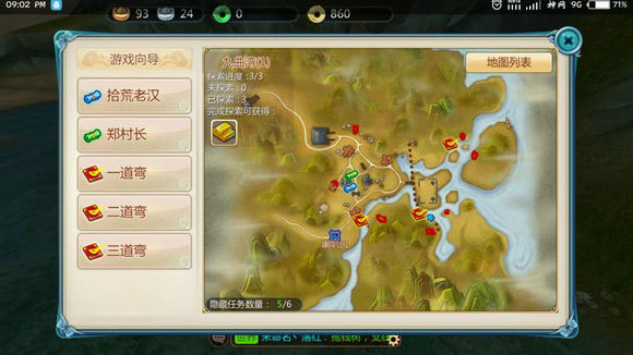 九曲湾:一张地图涵盖全部五个隐藏任务,均带有明显感叹号标识,随探索自然触发。