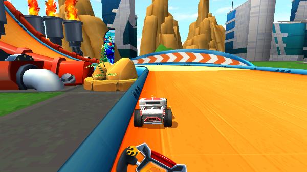 穿越拉拉队欢呼的人群与层层环道,在标志性的橙色Hot Wheels赛道上疾驰如雷;