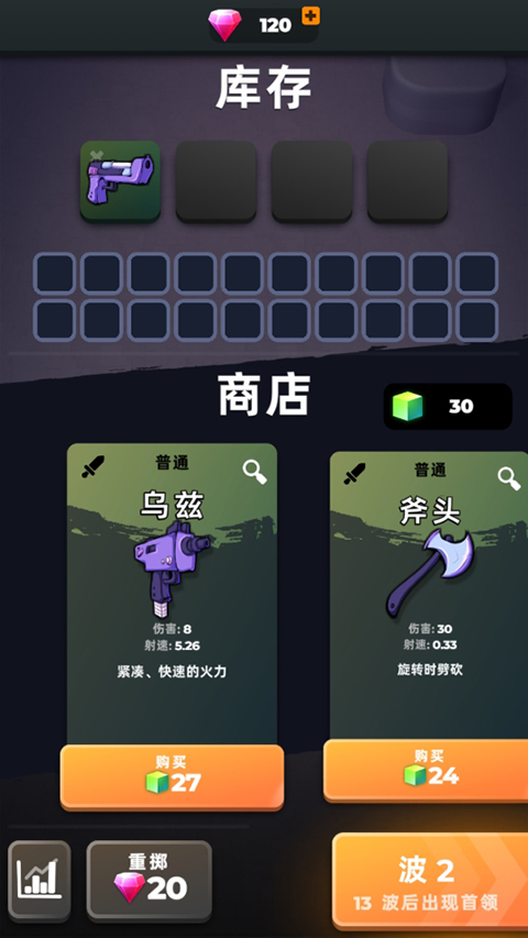 击败敌人后可收集其掉落的各类材料,前往商店兑换实用道具或更强大的武器装备。