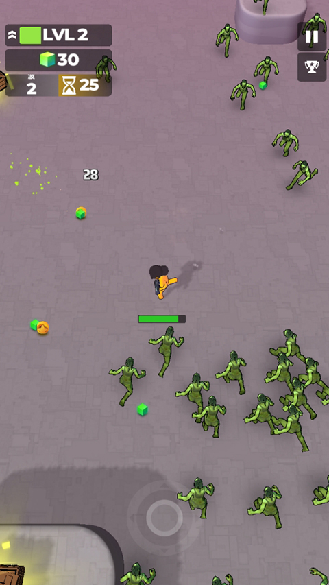 进入战斗后武器自动开火,玩家只需拖动角色移动,灵活闪避敌人的密集攻击波次。