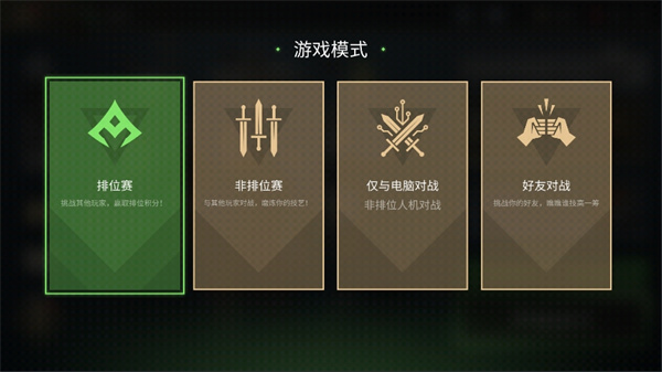 提供人机对战与排位赛两种主要模式。排位赛支持PvP竞技,达到特定段位可领取奖励,积分机制与系列前作相似。
