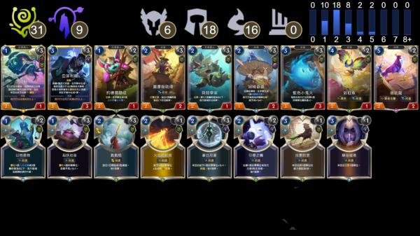 游戏以“区域”替代传统职业概念,如德玛西亚、弗雷尔卓德等。每套40张卡组可融合两个区域的卡牌,包含最多6张英雄牌,其余卡牌同名最多携带3张。