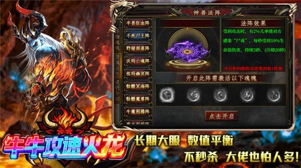 “牛牛攻速火龙”是一款以高攻速为核心特色的火龙版本传奇手游。玩家创建角色即享满攻速,大幅提升刷怪效率;充值货币可通过打怪掉落获取,零氪玩家也能轻松购买强化石与保护符。游戏内置智能挂机系统,配合自动出售装备功能,真正实现一键解放双手,海量元宝轻松到手!